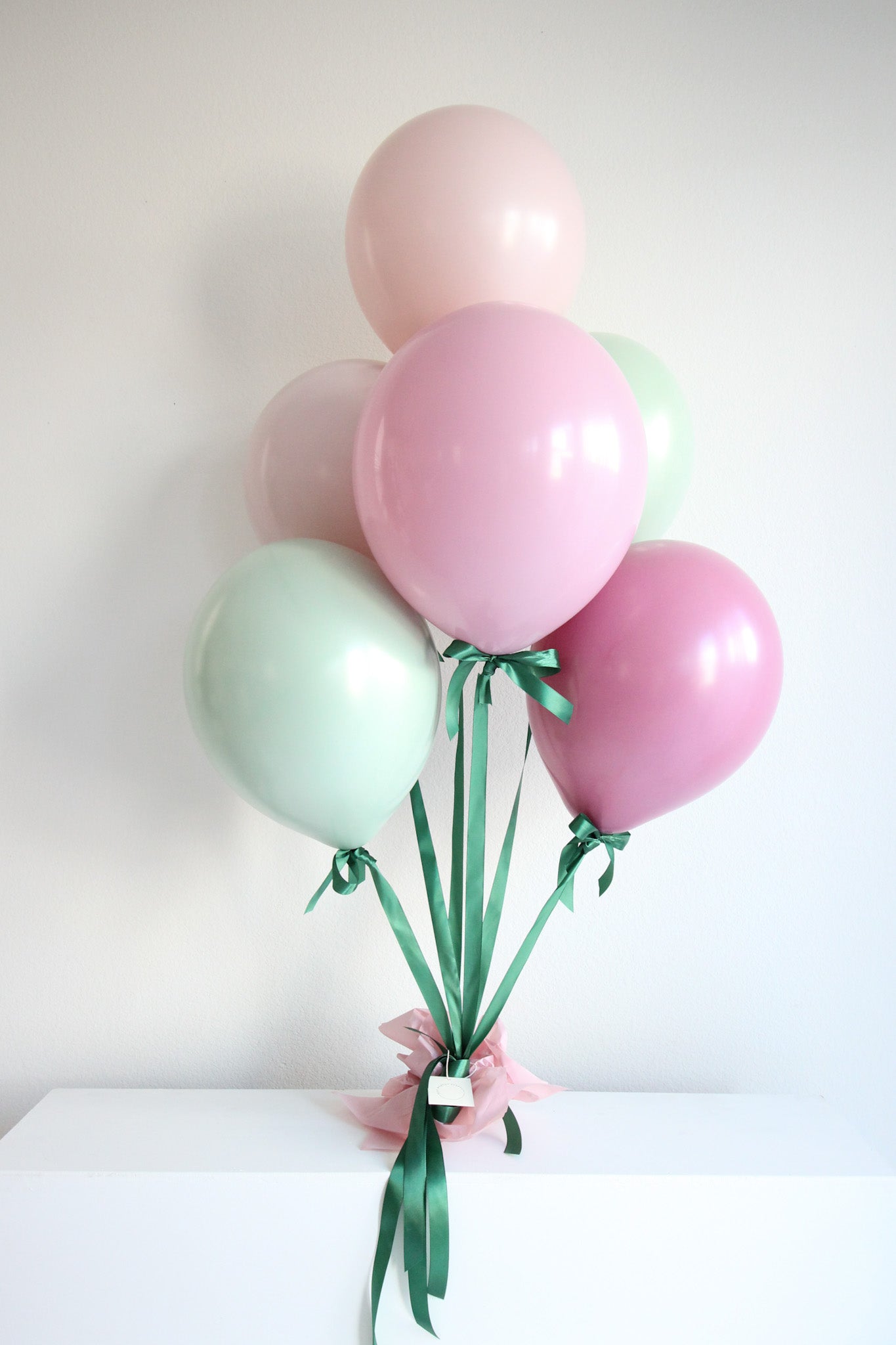 Step into a blooming paradise with Garden Party Thyme, a spring-inspired helium bouquet featuring rich dark pink and fresh green balloons, elegantly tied with green satin ribbon. Perfect for garden gatherings, bridal showers, or any event that calls for a touch of floral charm.